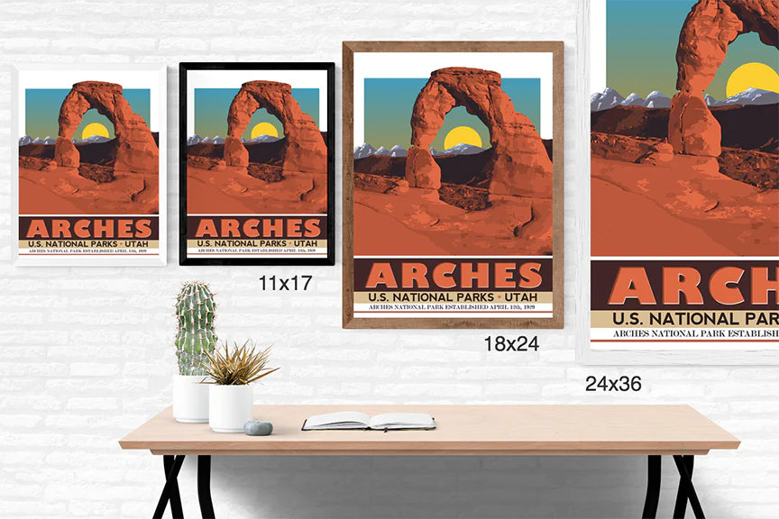 Original digital illustrations made by the team at I Lost My Dog based off of classic WPA posters of the National Parks. Enjoy this bold graphic design of the iconic imagery of one of the America's greatest national parks, Yellowstone. All of our prints come framed or unframed and are sized to fit standard frames if you only purchase the print.