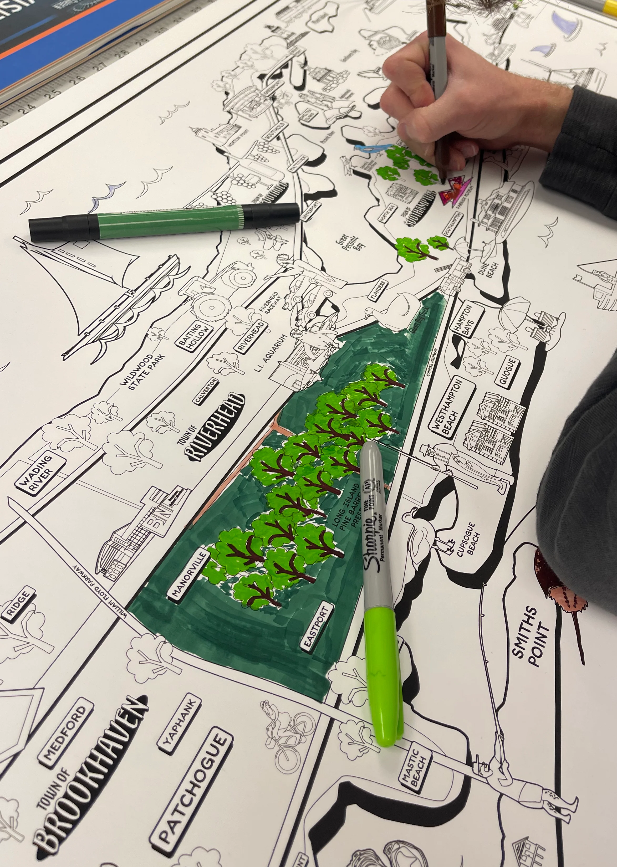 An "aha" moment...turn our art into something really fun for kids of all ages...COLORING POSTERS! These really big posters come with all you need for hours of drawing and coloring entertainment. The map shows many of the key attractions of Long Island from Brooklyn to Montauk and everywhere in between. We also keep some empty space for you to add in some of your favorite places. Wheter you are doing an art project for the whole family, keeping the kiddo's busy on a rainy day or shipping this to a loved one, it makes a truly fun and one of a kind gift.