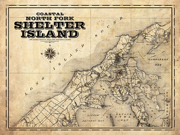 McDonald & Sons 1888 reproduction vintage map of Shelter Island.