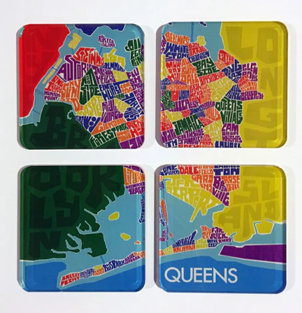 Our best selling maps now available as coasters. A great alternative to those that want to give the gift of art in some way other than a print or frame. These solid acrylic coasters are .5 inches think and designed with precision here in the U.S. Each pieces has a cork bottom to keep your surface scratch free and to absorb moisture.